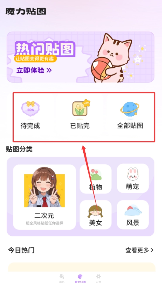 描图非常好用的贴图工具,里面有很多精选的贴图素材,帮助你进行绘画。无论你喜欢二次元风格,植物图案,可爱的动物,还是美丽风景,这里都能找到合适的贴纸,非常丰富。而且每一天都有新的热门贴图更新,用户可以轻松查看最新的排行,获取灵感。