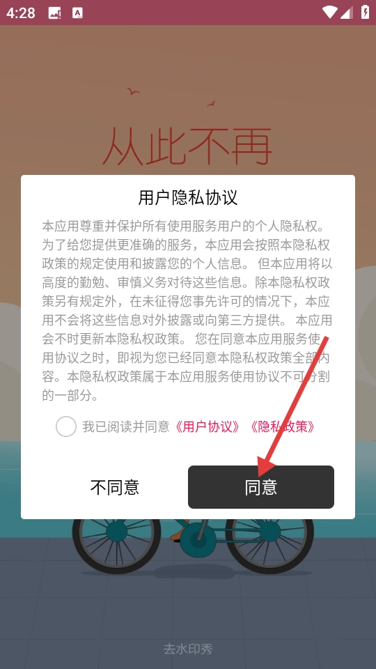 1、在用户隐私协议弹窗中,点击【同意】,进入应用主界面。
