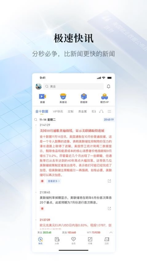 1、金十数据围绕实时、全面且具深度的财经资讯核心,助力投资者制定明智决策。 2、借助个性化订阅与实时行情监控功能,可使信息获取更精准高效,助力用户抢占市场先机。