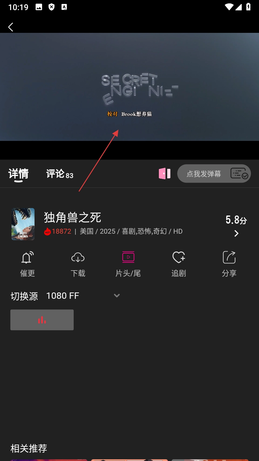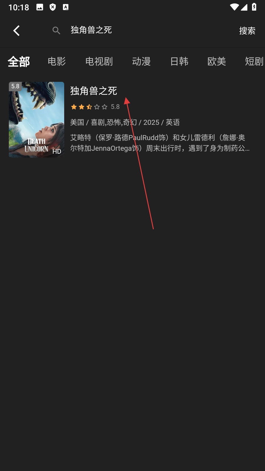 3、在搜索结果页面,点击目标影片【独角兽之死】,进入影片播放页面。