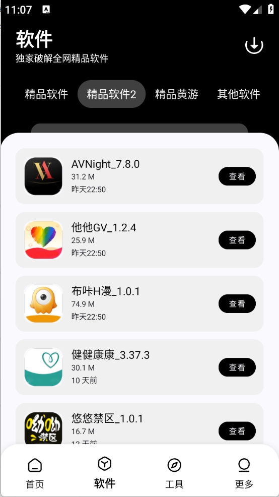 黑白软件库是一款软件资源非常丰富的手机软件,让我们可以在线众多优质的软件到手机上。并且所覆盖的类型众多,比如影视、小说、漫画类等。甚至还贴心地为我们提供了在线工具,如果我们日常生活中需要使用就可以直接打开。当然,最重要的还是所有的软件资源都是免费的,黑白软件库还会持续更新当下好用且火热的软件!
