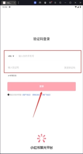 2、运行后输入手机号和验证码点击登陆。