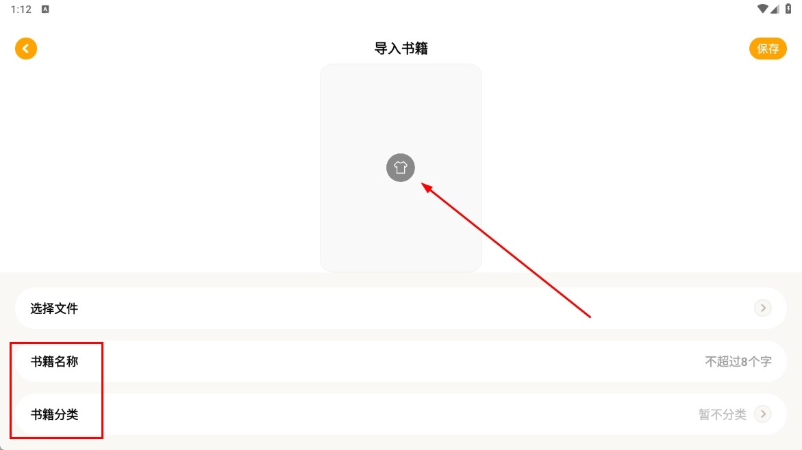 4、在导入书籍页面,可设置书籍名称、书籍分类,完成后点击【保存-功能按钮】完成导入。