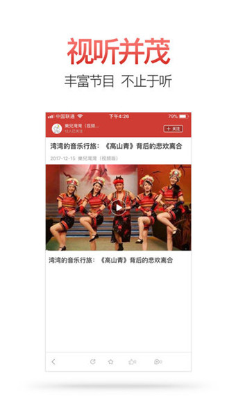 3、ChinaMusic手机版也将在媒体融合发展的大趋势下,成为具有国际台特色的创新举措。