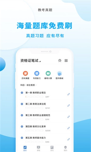 智能题库 精选近 5 年教师资格证和教师招聘考试的历年真题和模拟题,轻松刷题,系统自动记录错题集,可针对性练习