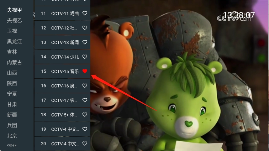 3、长按电视频道后面的爱心按钮就可以收藏了。