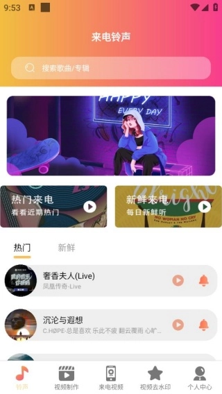 1、进入到铃声界面,有热门来电和新鲜来电提供,都是可以直接去选择合适的铃声。