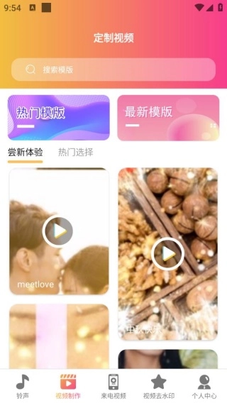 1、提供多样视频模版,支持用户自由编辑剪辑,打造独一无二的专属来电秀。