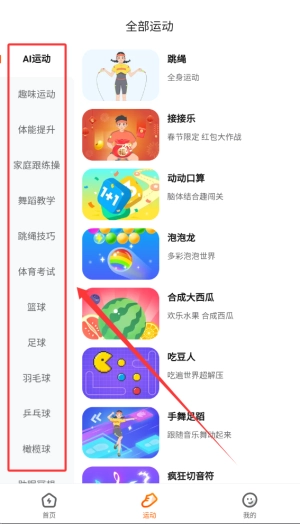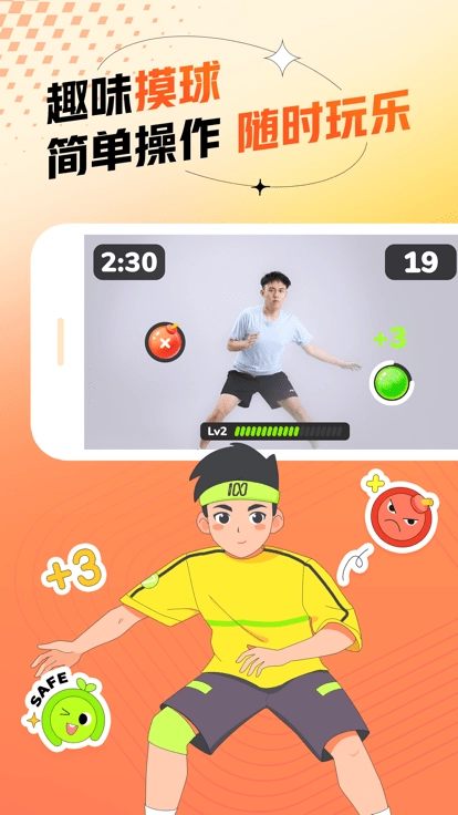 2、不仅涵盖跳绳、仰卧起坐、坐位体前屈等体测项目,还有多种有趣的运动游戏,你的身体就是游戏遥控器。
