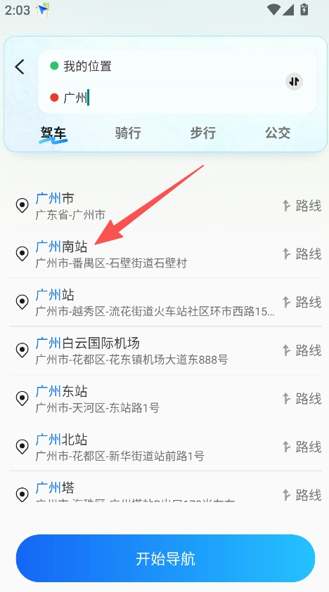 2、地点搜索精准,输入关键词后可快速匹配到具体地点(如广州南站及详细地址),避免地点混淆,搜索效率高。