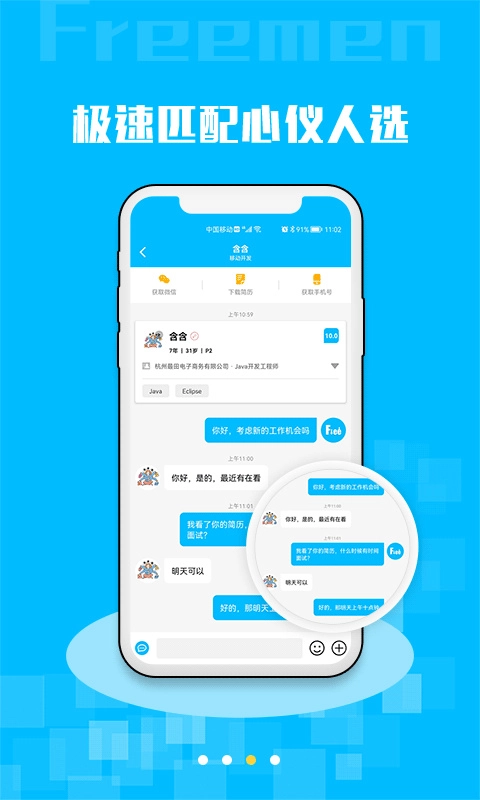随时随地在线沟通,及时锁定心仪程序员人才。
