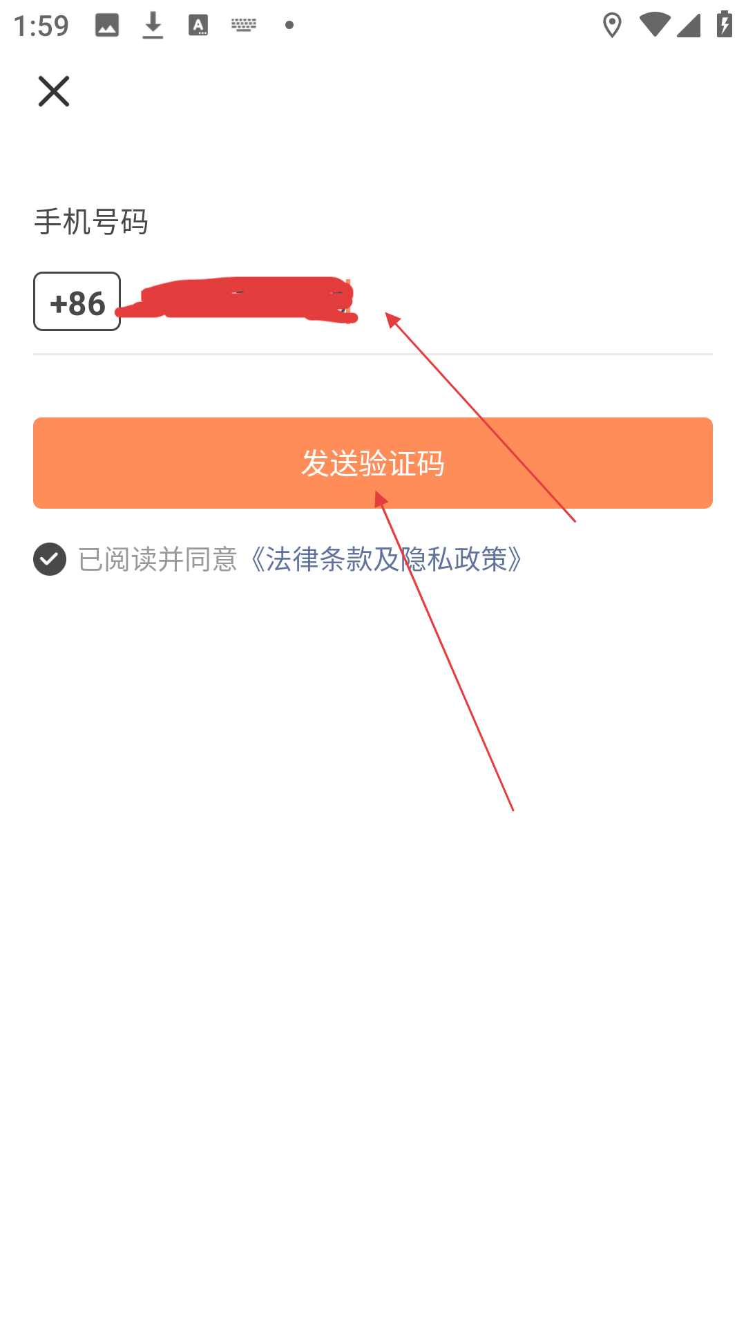 3、在输入框内填写手机号码后,点击【发送验证码】按钮。
