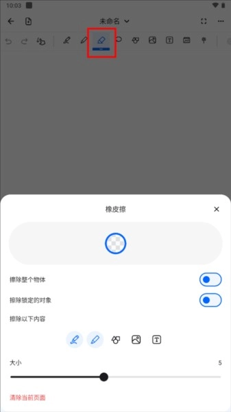 您还可以调整可擦除对象的类型,默认情况下只有钢笔和荧光笔块可擦除。