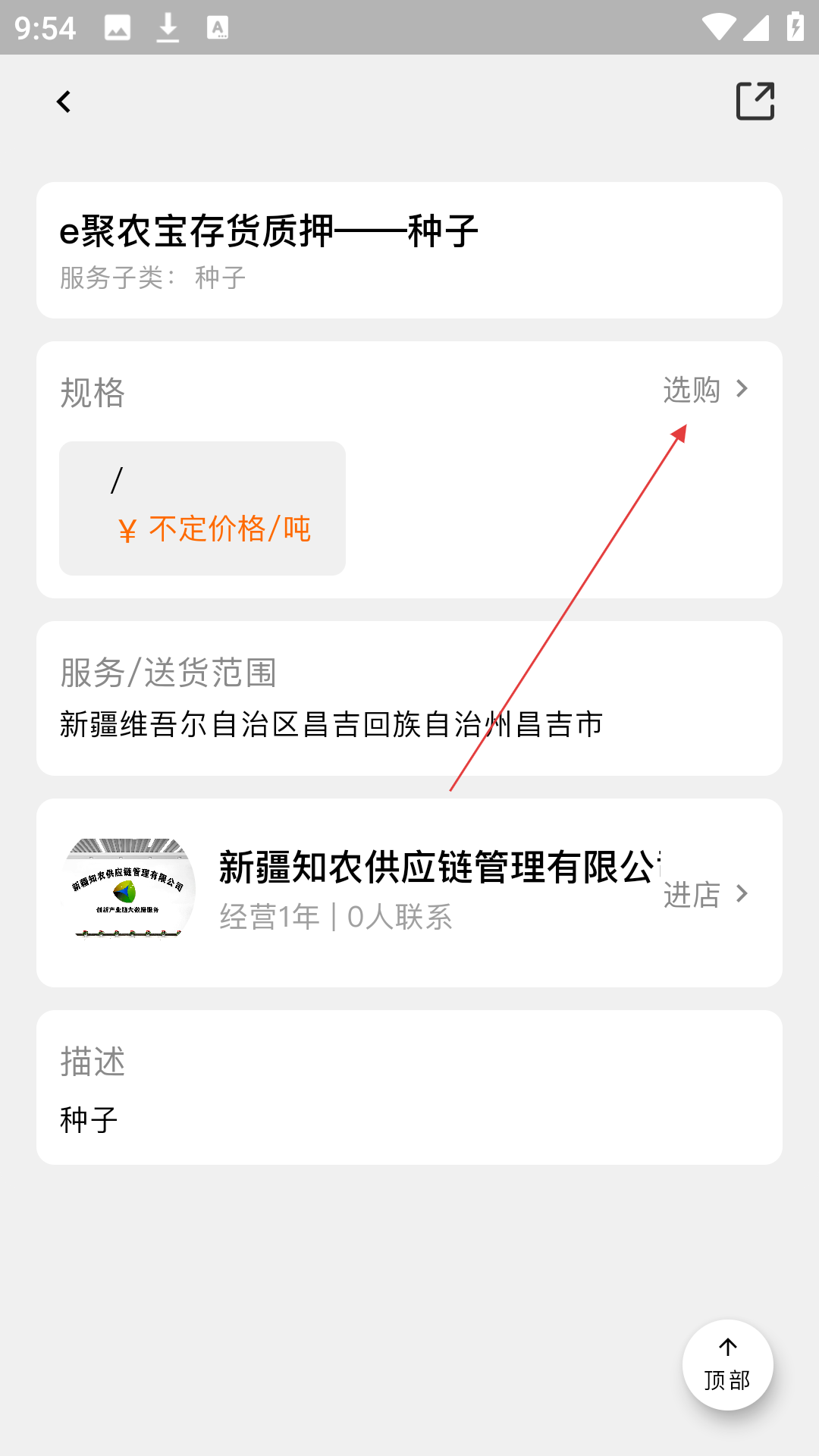 4、在商品详情页面点击【选购】按钮,即可完成农业商品的购买操作。