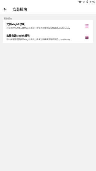 2、软件支持单个安装Magisk模块,以及批量安装两种方式