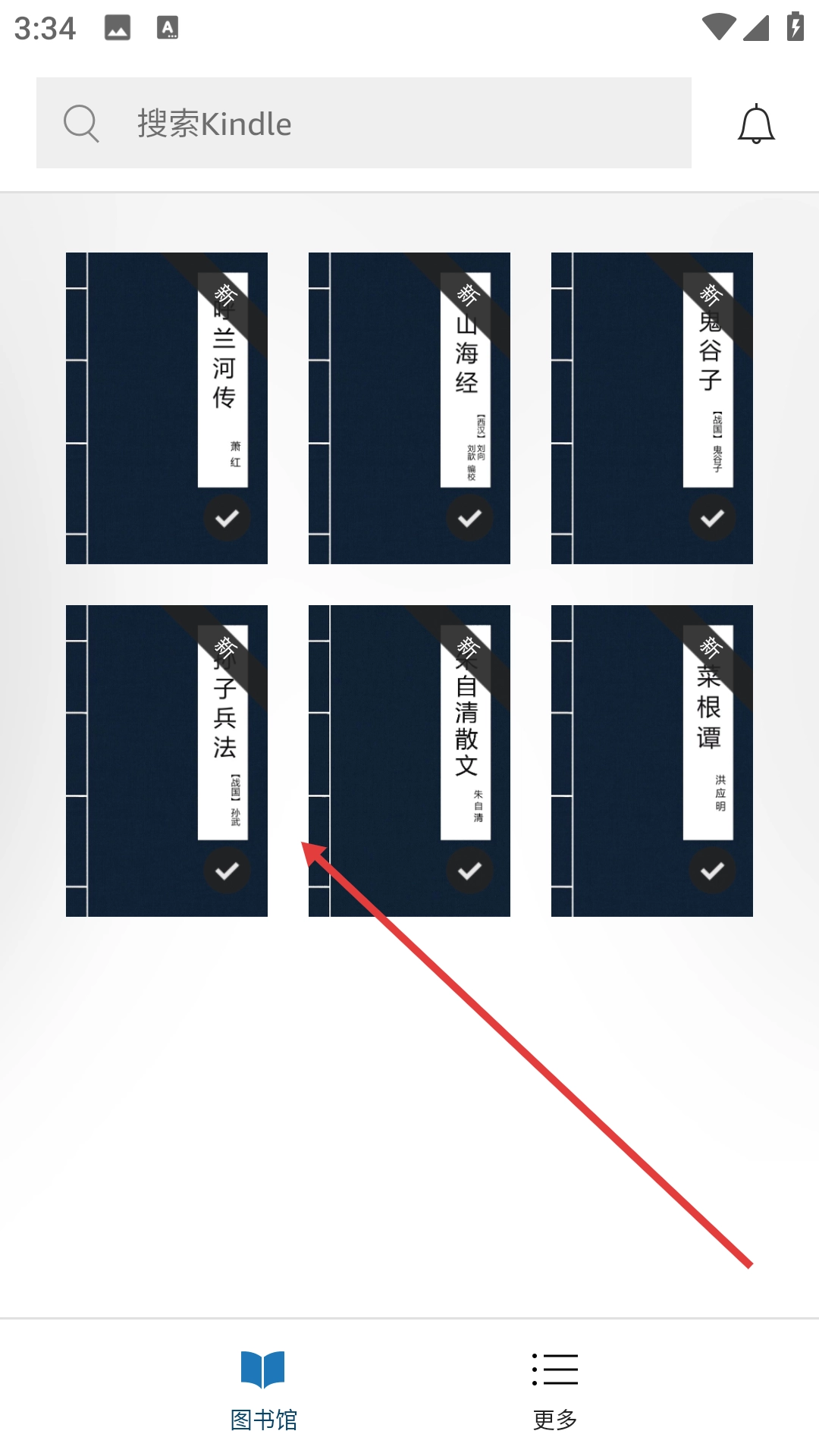 1、在Kindle图书馆界面选择目标书籍,如【孙子兵法】,进入书籍封面页面。