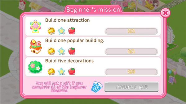 打造专属于你的游乐园,设计可爱又好玩的游乐项目,摆放你心仪的店铺吧。