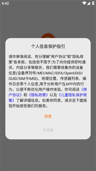 1、首次打开应用后,仔细阅读用户协议及隐私政策,确认无误后点击同意。