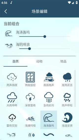 3、支持个性化场景编辑功能,可自由组合多种白噪音,打造专属声景。