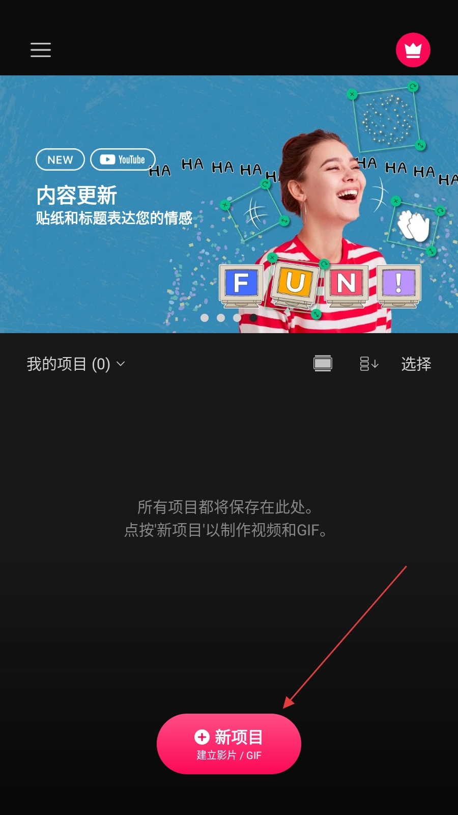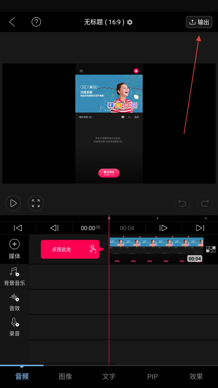 1、点击【新项目】,进入媒体选择页面。