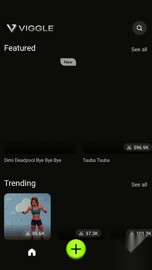 4、注册登录后进入Viggle界面,点击加号即可开始创作,添加视频和相册展现创意。