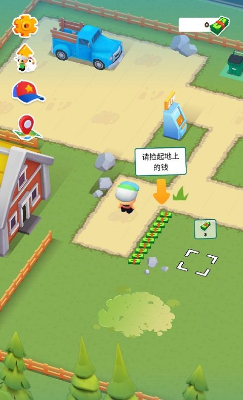 1、刚进入游戏时一切都是空白状态,不过好在初始阶段有大量资金可供使用,先捡起地上的钱,然后就可以开始规划并打造属于自己的商业中心了!