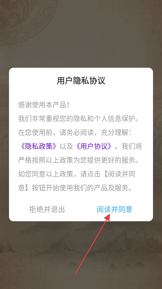 1、使用前需阅读【用户隐私协议】,点击【阅读并同意】进入主页面。