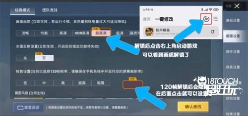 ②挑选适配自身的帧率,教程图片中选择解锁全部画质以及120帧率。