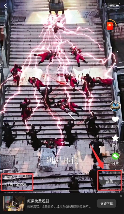 3、在播放页面利用选集功能切换具体剧集,还能开展分享操作。