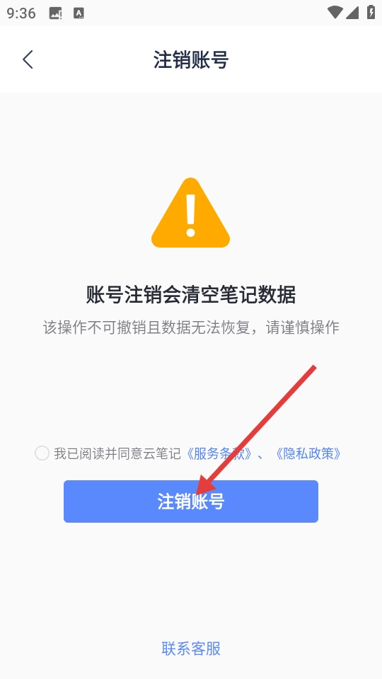4、在【注销账号】页面中,勾选同意条款后,点击【注销账号】按钮完成操作。