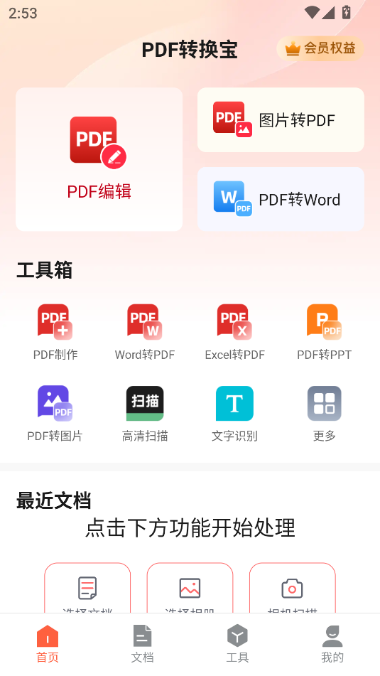 3、工具界面提供了格式转换、文档处理等全类型功能