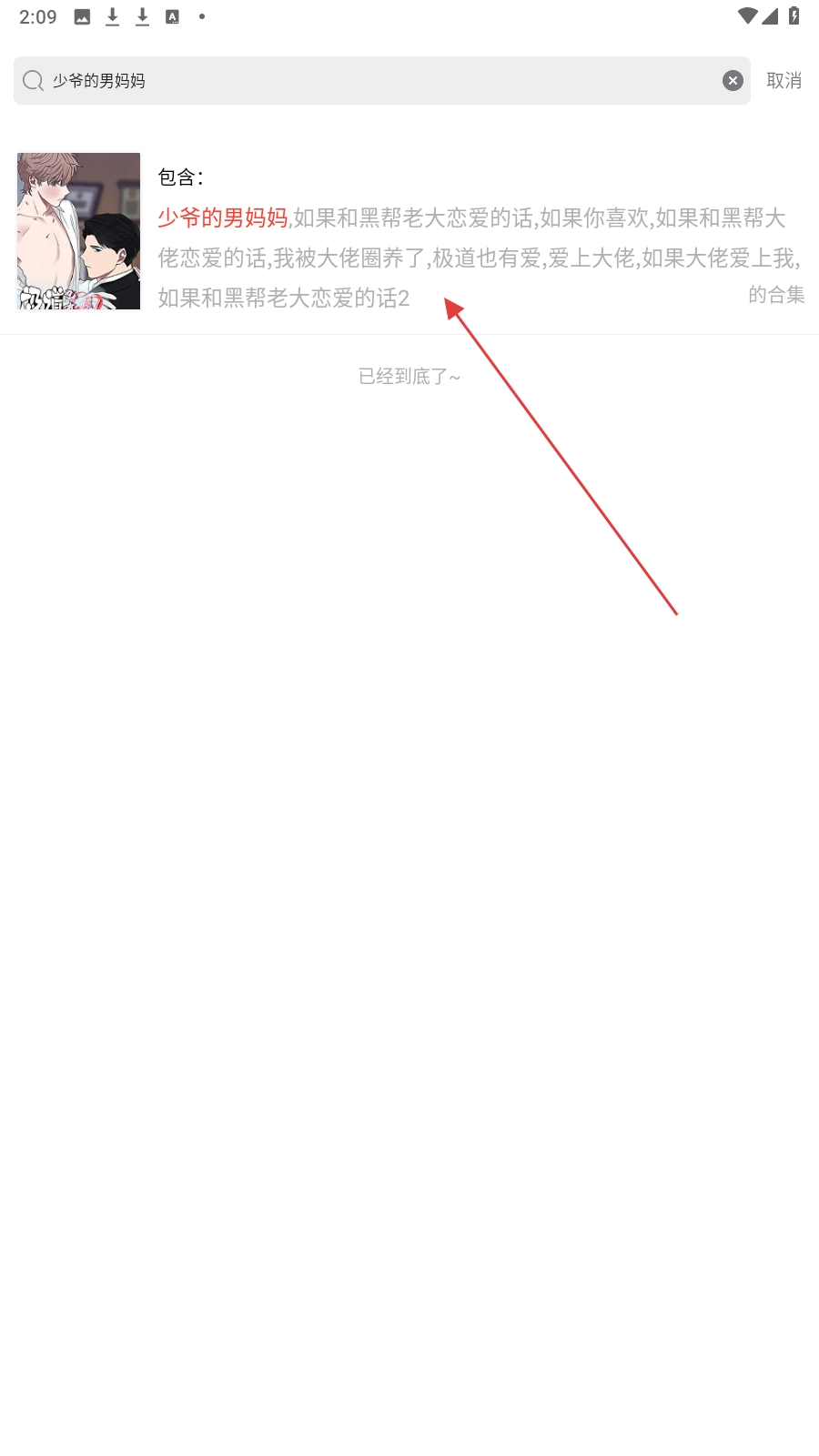 2、在搜索框输入【少爷的男妈妈】,点击搜索结果,进入合集页面。