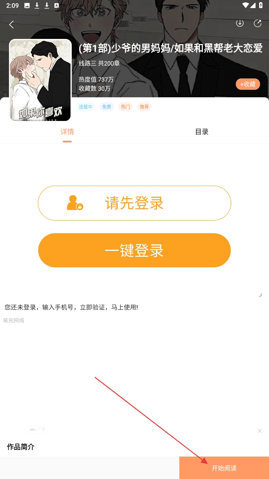 4、在漫画详情页,点击【开始阅读】按钮,进入阅读页面。