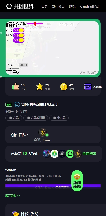 共创世界台风模拟器本身是没有独立的,其实就是指的是共创世界里面玩家自已做的的台风模拟器作品,目前只要注册登录就可以直接畅玩,手机端虽然可以玩但是按钮有点偏小,实在要玩建议大家切换为横屏进行游玩,手机上安装一个共创世界,然后搜索台风模拟器即可。