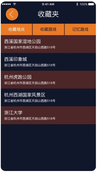 2、收藏地点 用户可以针对常用的旅游导航地址收藏,寻找所有的收藏地址导航。