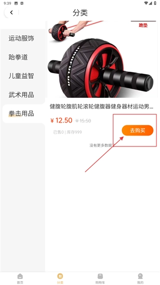 2、在分类页面选择【拳击用品】分类标签,即可查看对应的商品列表。
