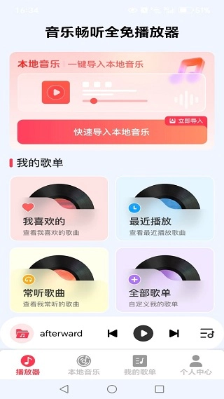 1、便捷导入本地音乐,智能梳理文件,使音乐库条理分明,随时沉浸于美妙旋律之中。