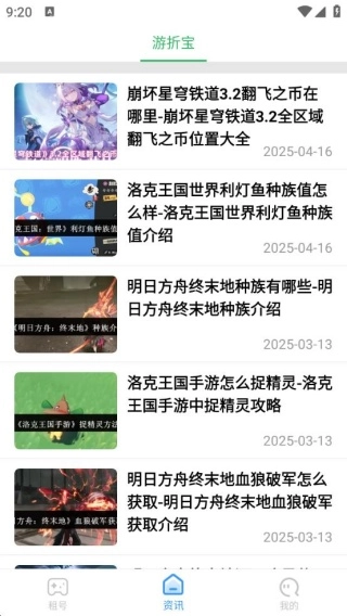 游折宝是一款综合性游戏服务平台,为广大玩家提供游戏资讯、账号租赁、热门游戏推荐等丰富多元的服务内容。平台汇聚了多款热门游戏的资讯与账号租赁资源,实时更新游戏攻略、玩法解析等实用信息,全方位满足玩家对各类游戏信息的获取需求,同时还提供众多游戏的高性价比账号租赁服务。