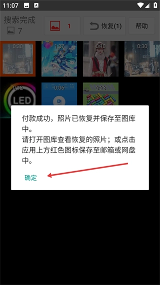 4、点击【确定】按钮即可结束该流程,之后可以前往设备的图库,查看已经恢复完成的视频文件。