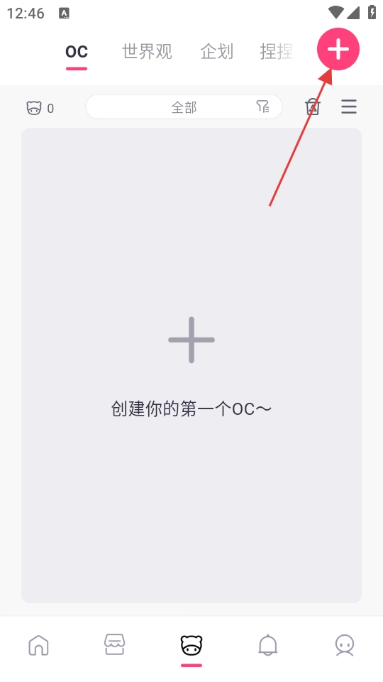 3、在弹出的功能选项里,点击“创建OC”按钮,就能跳转到OC档案的编辑页面。