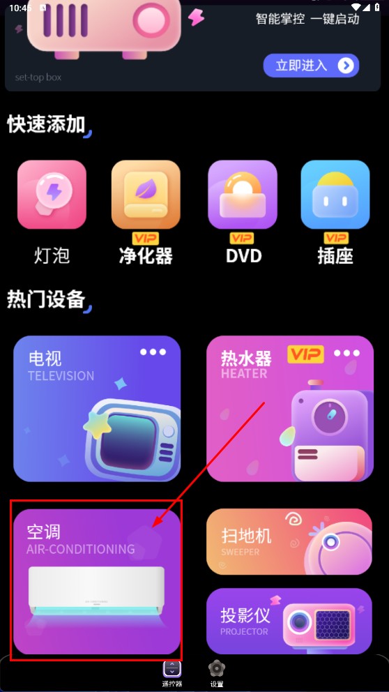 1、在设备添加页面,点击【空调】选项,即可进入空调遥控器的配置流程。