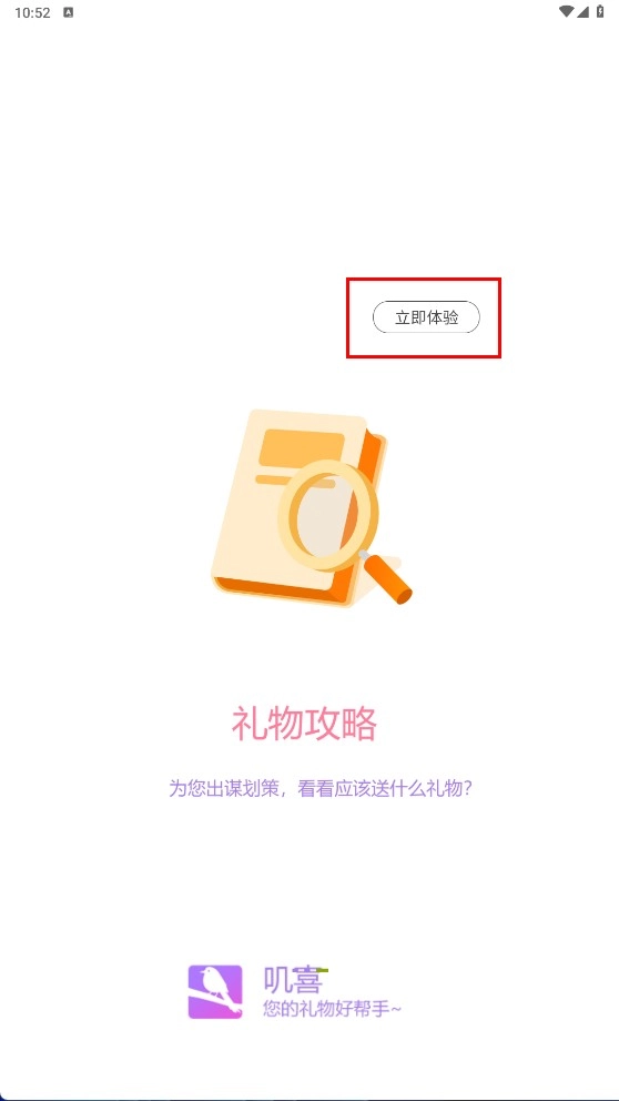 1、点击【立即体验】按钮,进入应用主界面,即可开启礼物攻略服务。