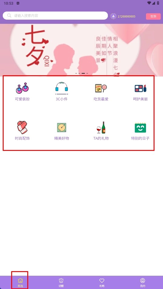 2、进入“精选”页面后,挑选“可爱装扮”“3C小件”等相应分类,即可得到对应类别的礼物推荐。
