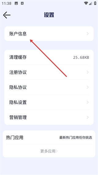 3、进入设置界面后,点击【账户信息】选项,此时应用会启动登录验证流程。