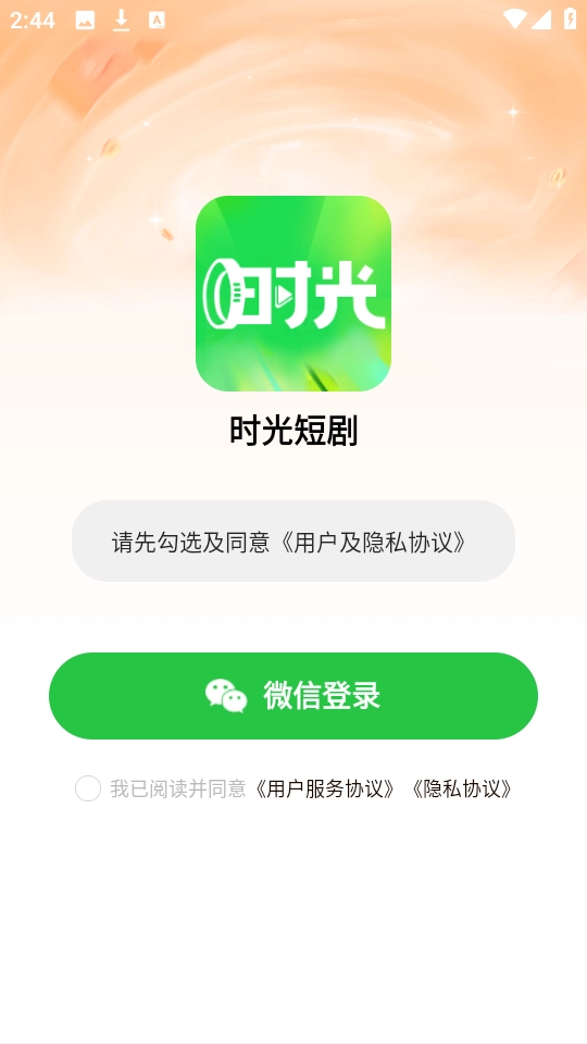 1、并安装最新版本的时光短剧后,启动应用程序。