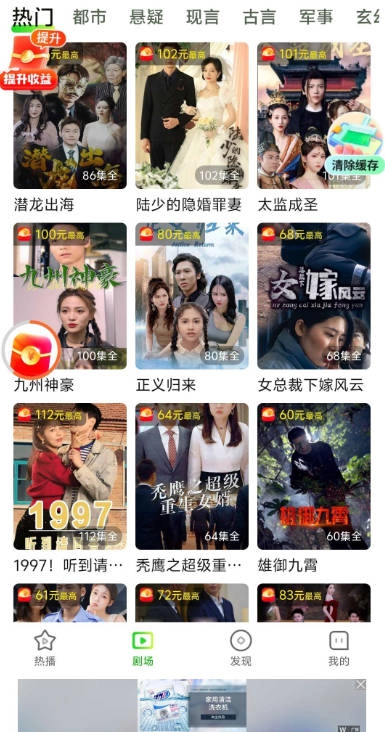 3、点击底部菜单栏里的“剧场”选项,就能浏览到多样的短剧分类和推荐内容。