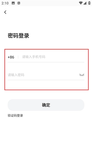 4、切换到【密码登录】界面,填写【请输入手机号码】和【请输入密码】这两个栏目的内容,然后点击【确定】按钮,就能完成登录操作了。