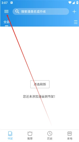 1、打开异次元漫画App后,点击屏幕左上角的菜单图标。