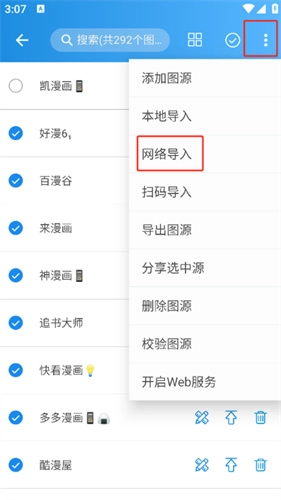 3、进入图源管理页面后,点击页面右上角的“网络导入”按钮。