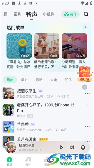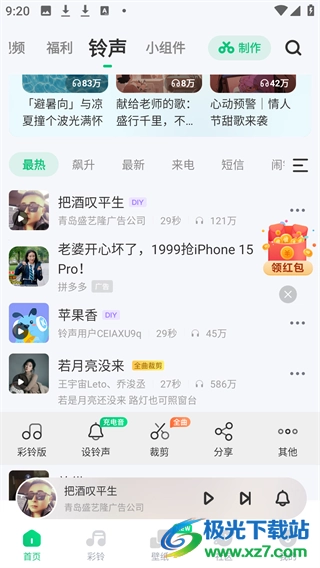 进入软件后,你会看到顶部有不少小分类,点击“铃声”这个选项就能进入对应的页面了。